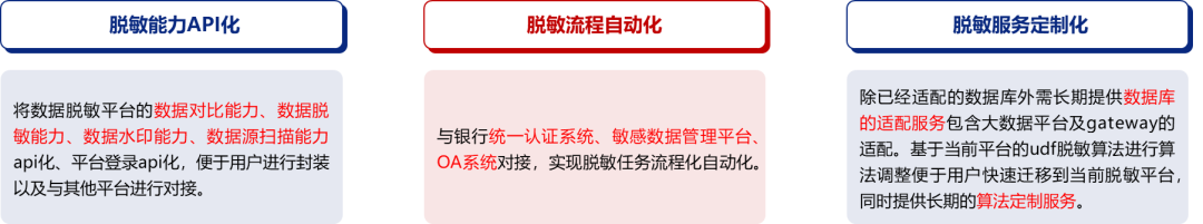 通过与客户4A平台、数据资产管理平台、OA平台进行对接整合,实现数据脱敏导数流程的线上化与自动化,导数耗时缩短80%以上。